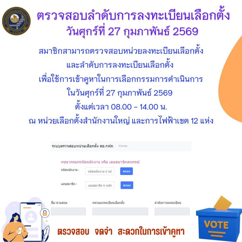 แจ้งสมาชิกตรวจสอบลำดับการลงทะเบียนเลือกตั้ง 2569