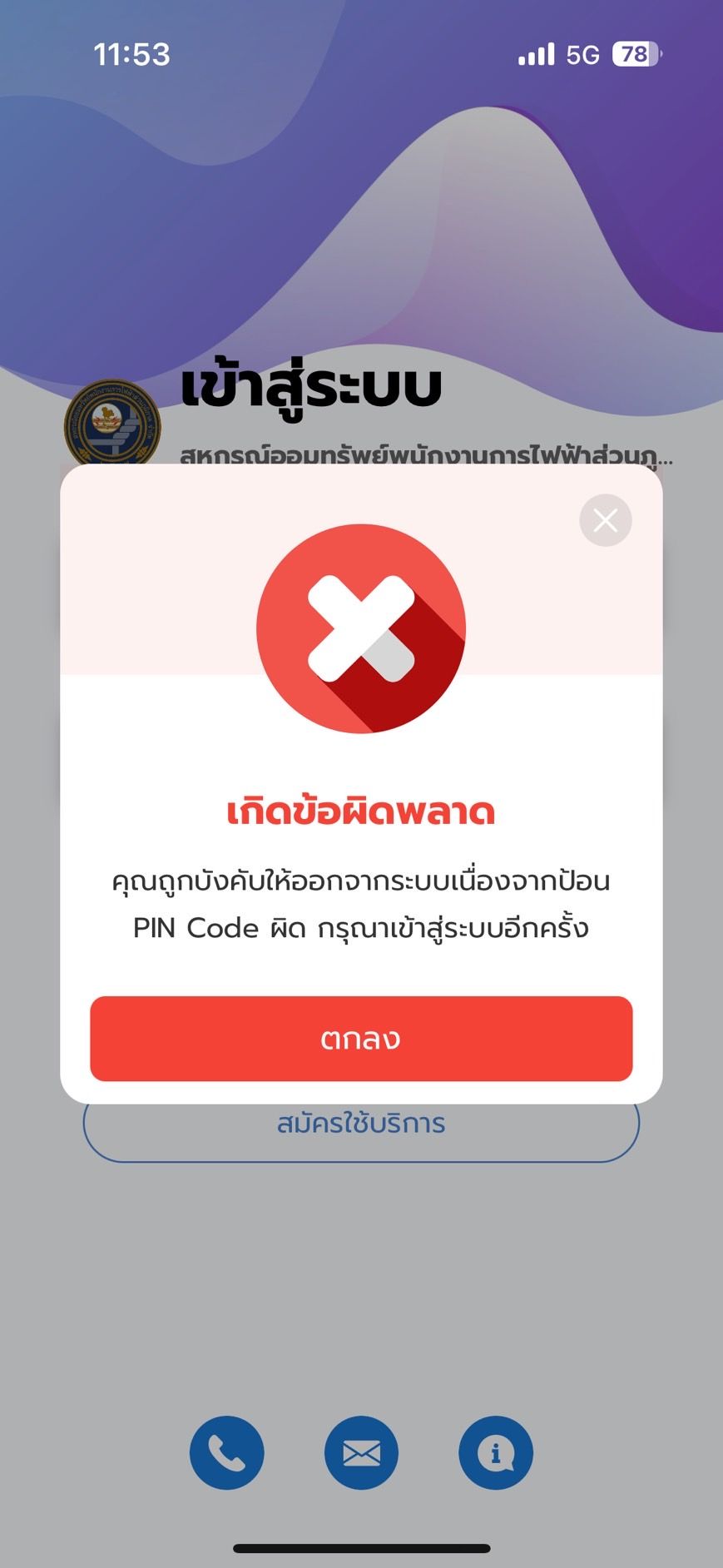 หากสมาชิกกรอกรหัสผ่าน หรือ PIN ผิดพลาด เกินจำนวน 5 ครั้ง บัญชีจะถูกระงับการใช้งาน